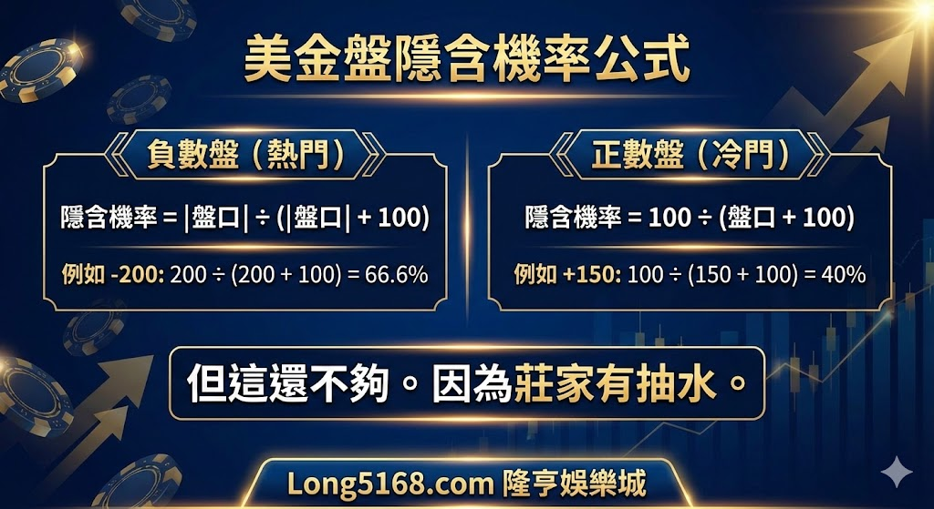 隱含機率 = |盤口| ÷ (|盤口| + 100)